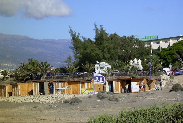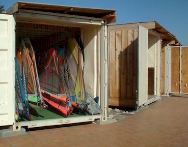 Das ist nun Geschichte - wir kämpfen für die Zukunft und haben die Boxen im Gebäude hinter Canarian Surf Fruit und FlashPoint installiert. Nun leider ohne Süßwasser-Dusche und Pressluft für die Kiter. |